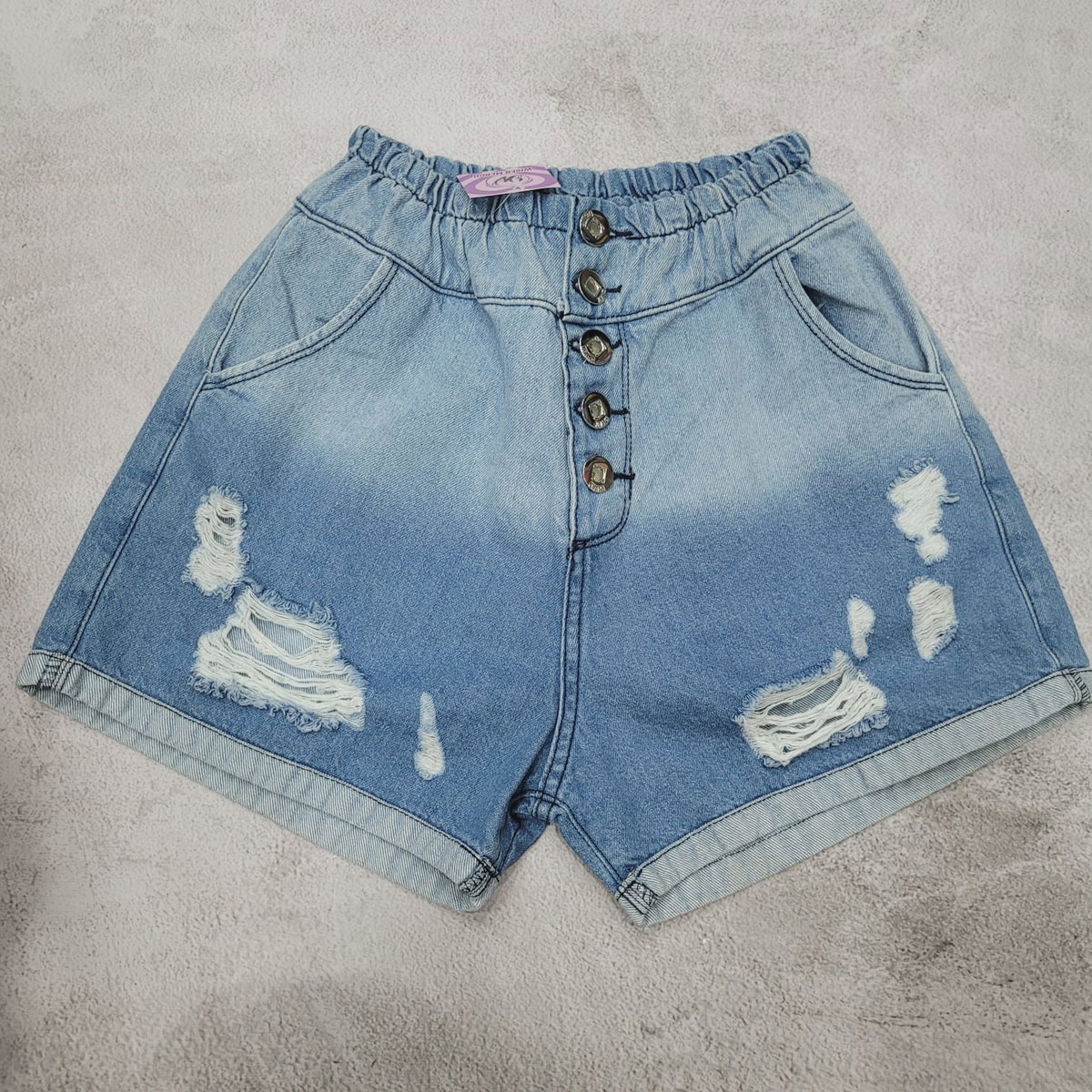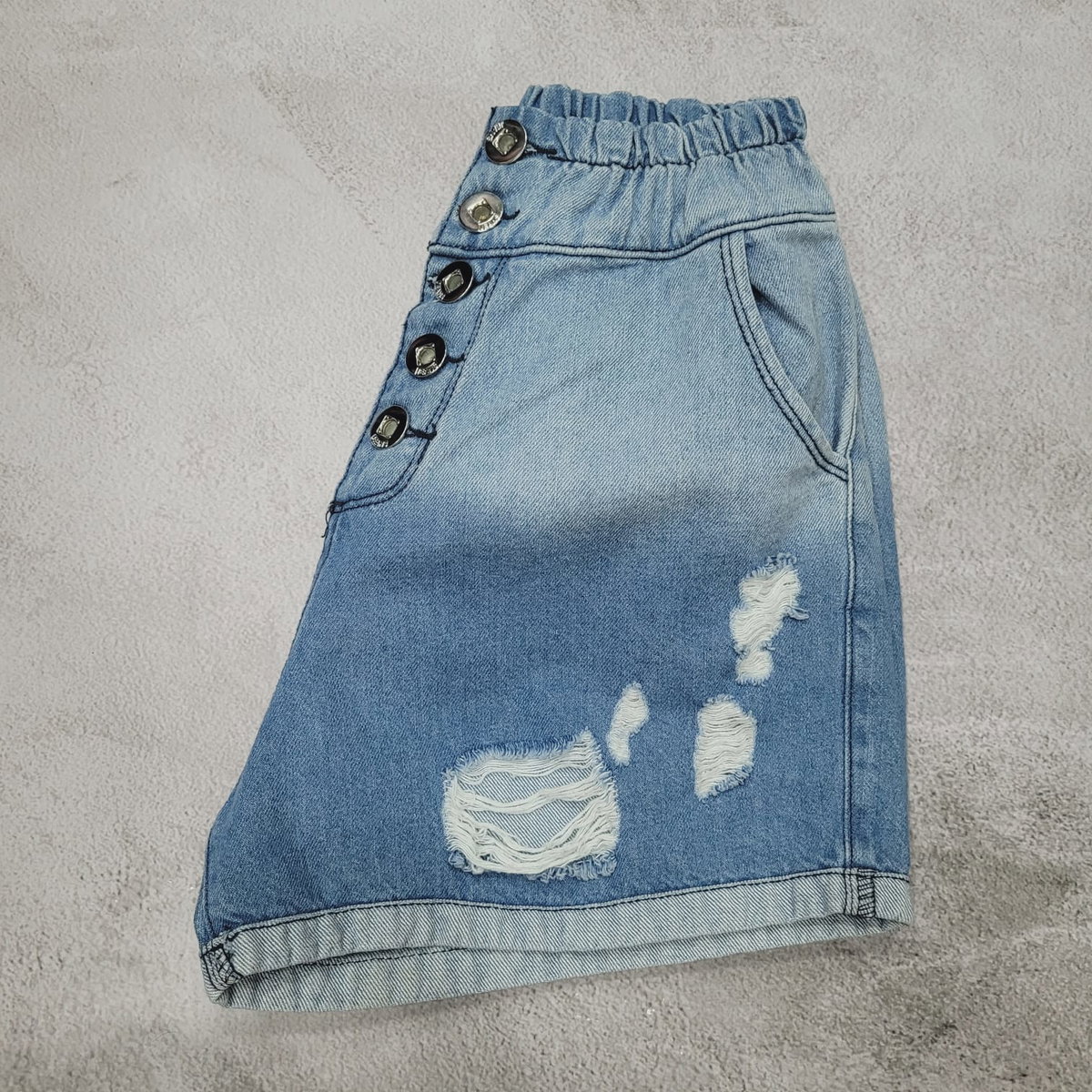 Short celeste rígido con cintura de elastico
