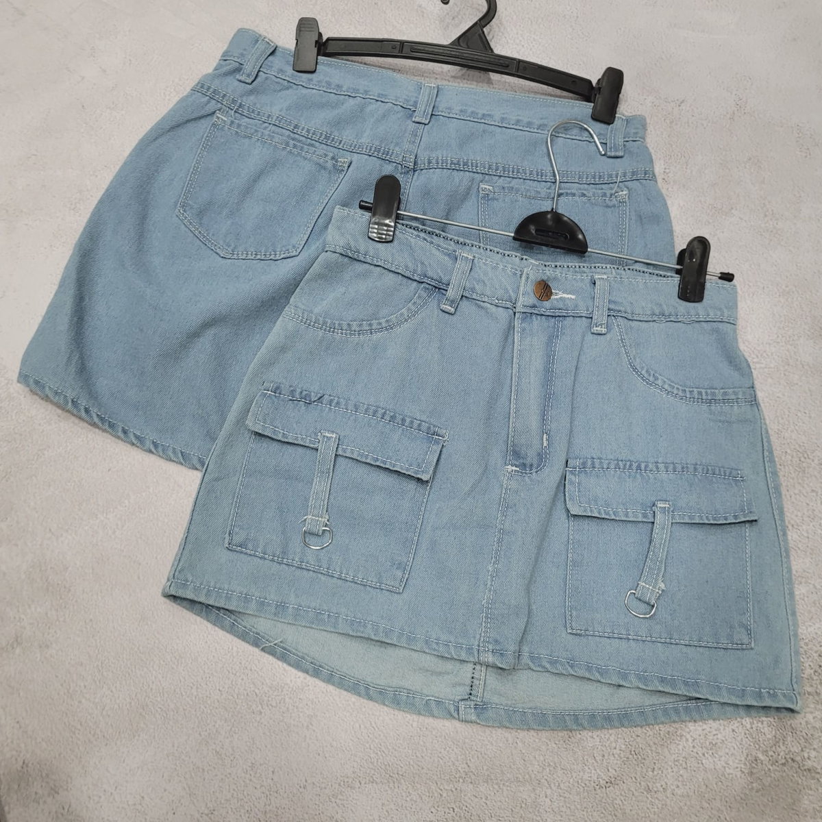 Pollera mini cargo rígida (liviana) más largas atrás que al frente